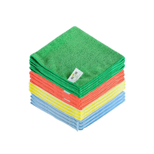 Globe Commercial Products 14"x14" Microfiber Cloths Assorted Colors (12 Pack)